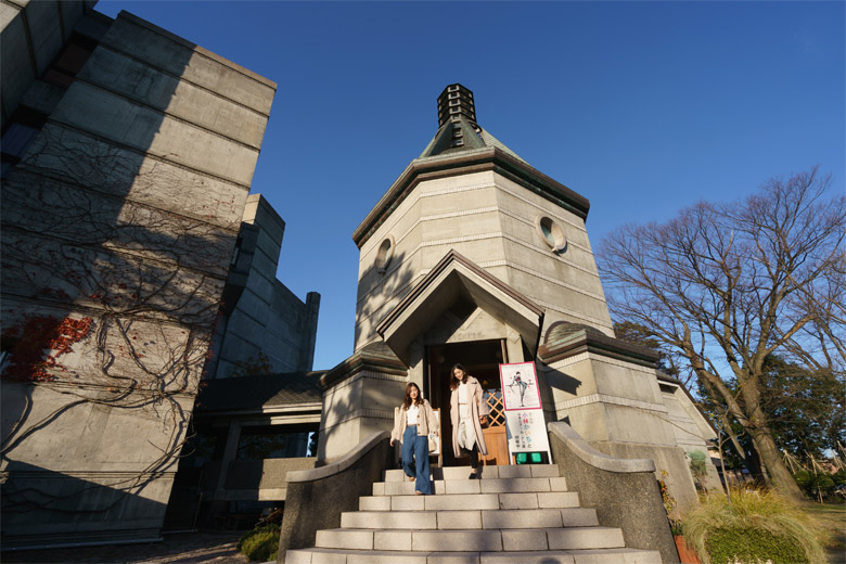 2階には実際に使用していた画材など貴重な資料が展示され、無料で楽しめるぬり絵コーナーもあります。チャペルのような建物は、虹児が放浪したこともあるというロシアの教会をイメージしたもの。作品の美しさが際立つモダンな建物の中で、アートなひと時を過ごしてみては?