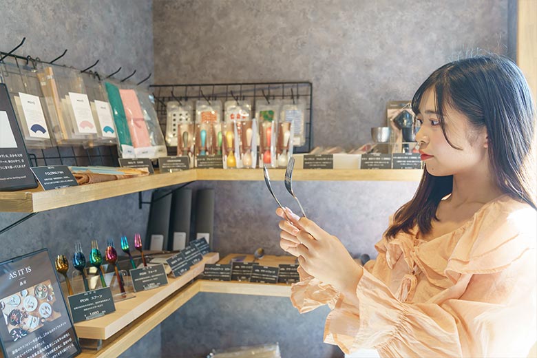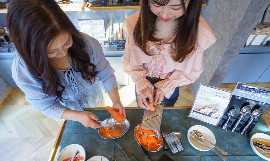 您可以親眼看到、親手觸摸並享受選購新潟縣22家製造商生產的工藝品的樂趣。削皮器、筷子、指甲鉗等等,應有盡有。